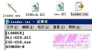 解压到创业王安装目录,请把dll=ceo.dll的ceo.dll和exe=ceo.exe的ceo.exe改成解压到创业王安装目录,如果没解压到安装目录(4个文件),请把dll=ceo.dll的ceo.dll和exe=ceo.exe的ceo.exe改成对应文件的全路径,WINDOW=1或0实现窗口化或全屏启动游戏,然后运行loader.exe启动游戏