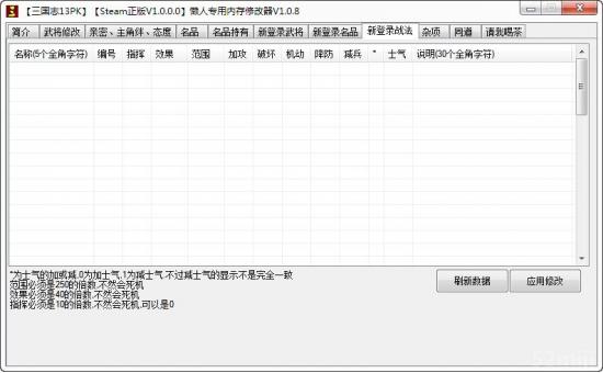 | 2017.02.19 | 三国志13:PK版懒人专用编辑器 | Steam 正版 繁中 v1.0 | v1.08(旧版) |