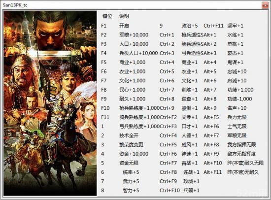 | 2017.02.21 | 三国志13:威力加强版修改器 + 50 | 繁体中文 v1.0 | - |