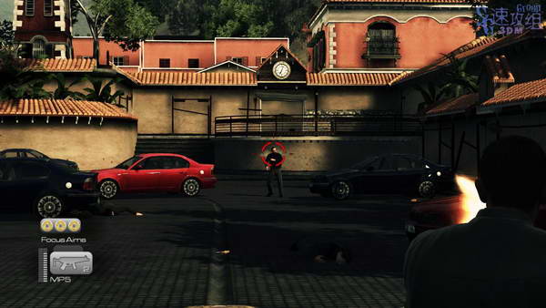 按Q可以切换武器,干掉停车场的敌人后去对面的建筑,门口还是有几个敌人,干掉后来到BOSS的房间,过场动画。