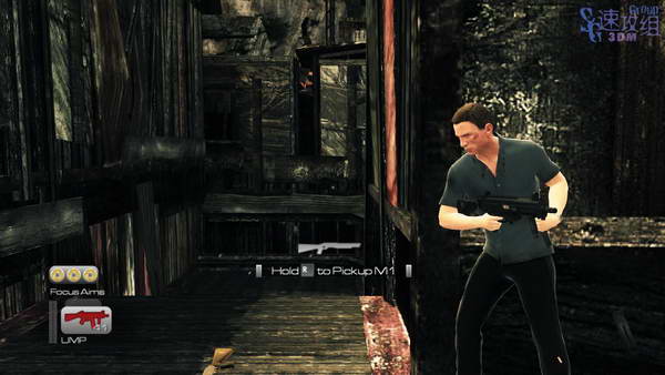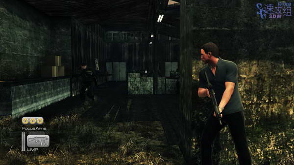 沿着走廊前进,干掉两个敌人后上楼,楼上门口捡起自己的枪和手机,然后用手机开门后出去。