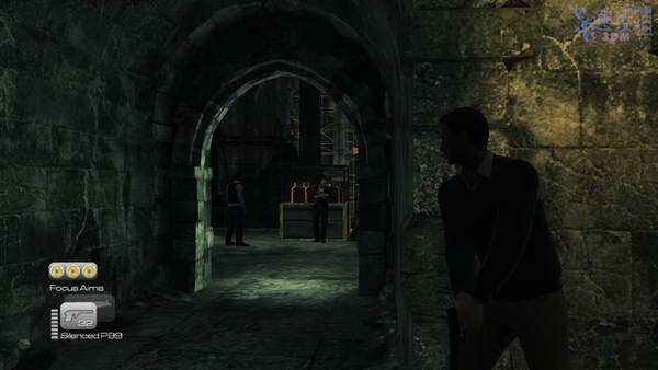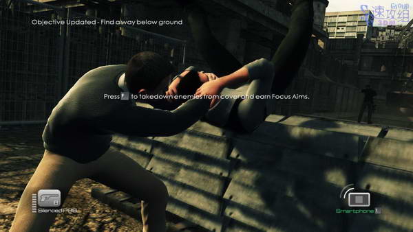接下来的大厅有几个敌人,按1使用手机可以查看敌人数量和位置,全部干掉后继续前进。