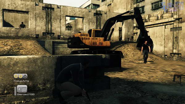 第一关第一节,一开始先是一段OP,然后过场动画,动画结束后我们顺着街道前进,尽头处和工头对话,然后下到工地。