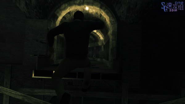 这里干掉所有敌人,小心左右两边上层的敌人,都干掉后从左边上梯子,然后按E踢开木头搭桥,然后过桥继续前进。