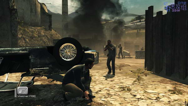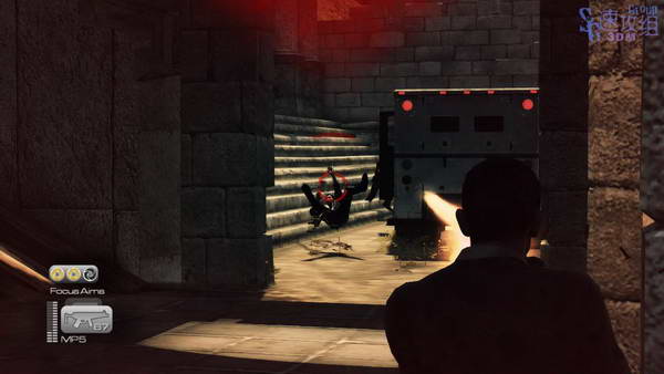 接下来的场景一辆卡车从进来,车上下来两个人后卡车又继续向前开,干掉两根人后跟上去,干掉从停下来的卡车上下来的敌人和其他一些敌人。