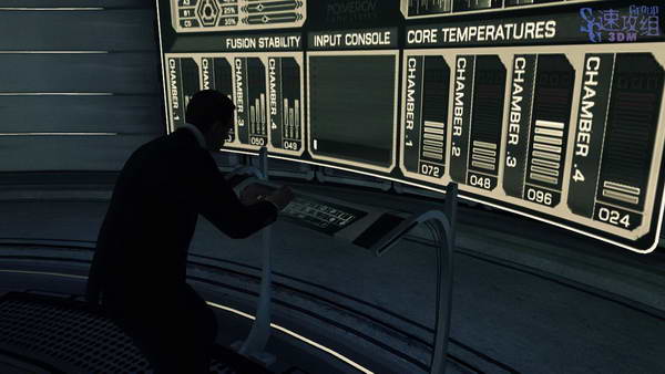 进入这里的建筑后跑到楼下的这个控制室使用电脑,第一次使用之后警报响起,然后立刻找掩护。