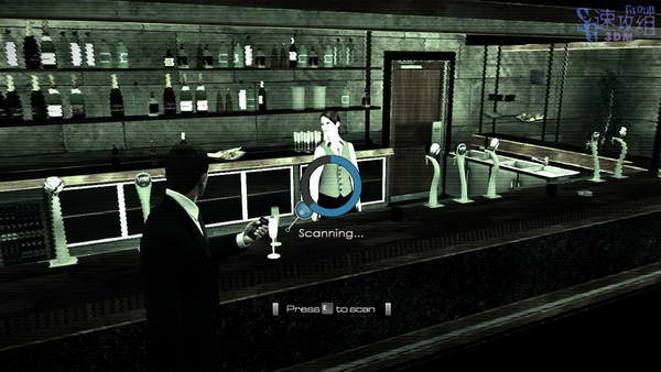 接着原路返回,从门里出来后上楼梯,到二楼的柜台那里,用手机扫描杯子上的指纹,然后再回到一楼,进入电影院用手机收集声音,然后到有警卫的的门那里用手机开门,然后警卫离开,我们进去。里边有四个守卫,由于之前的敌人都是CQC干掉的,所以立刻CQC解决掉最近的敌人后处决其他三个。