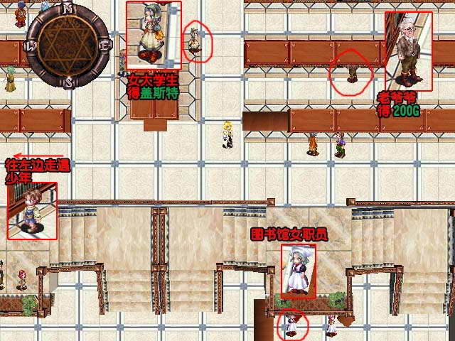 1.女大学生准备考试但找不到经营学概论,对话后再与图书馆女职员对话,艾路德发挥美男魅力向职员取得经营学概论,把书交给女大学生