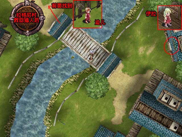 事件:救回猎人后,与他的小女儿伊拉对话几次,得知她喜欢西斯,然后窗口附近似乎有动静,在村桥附近找到迫儿,得知他被伊拉拒绝了,而且还打算报复西斯……