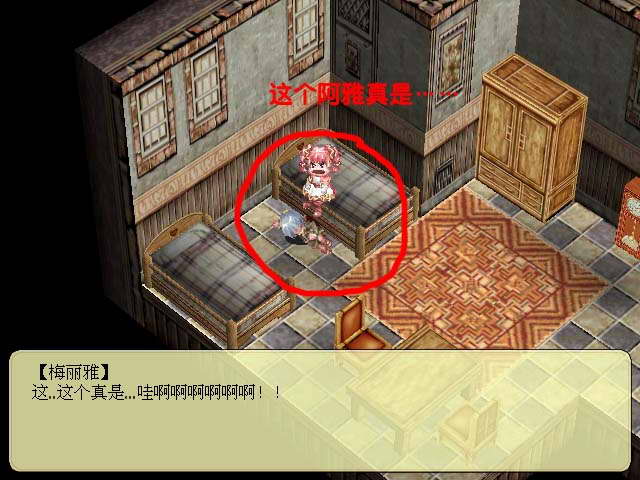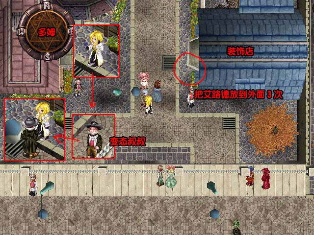 事件:与她对话几次后,她会称艾路德为变态叔叔,然后快速绕圈跑动,再与她对话几次,少女就会停下来。