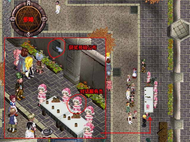事件:第一个达兰特取得后回城与服务员对话得知摸彩活动,再到旁边和服务员摸彩,然后继续旅行至第二个达兰特取得后回来对奖
