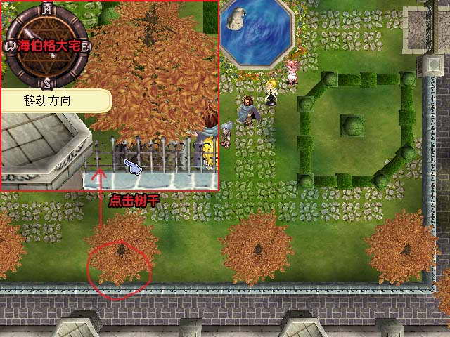 事件:把地图指针的N转到上面,在宅下方右数第3颗树木下面可以找到艾路德小时候藏的钱。