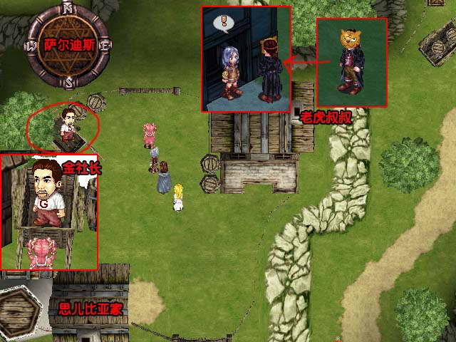 事件:在往萨尔迪斯通路旁的房子遭小偷,进去了解情报,来到了萨尔迪斯,在主线任务要前往营救皮时经过思儿比亚的家,近去打招呼和小孩说话得到老虎叔叔情报,再向思儿比亚对话便去完成主线任务,完成后回到把拉发现失窃的家隔壁也失窃了,进去屋内靠近门,不顾士兵的拦阻偷听对话,之后众人被发现在偷听被赶出门,再到萨尔迪斯旅馆睡觉会触法老虎叔叔事件,次日会在思儿比亚加外的手推车上发现金社长,解开他的问题就可以得到奖赏(答案选第二项,选错了也没关系可以再做)。关于老虎叔叔据说还有后续情节……