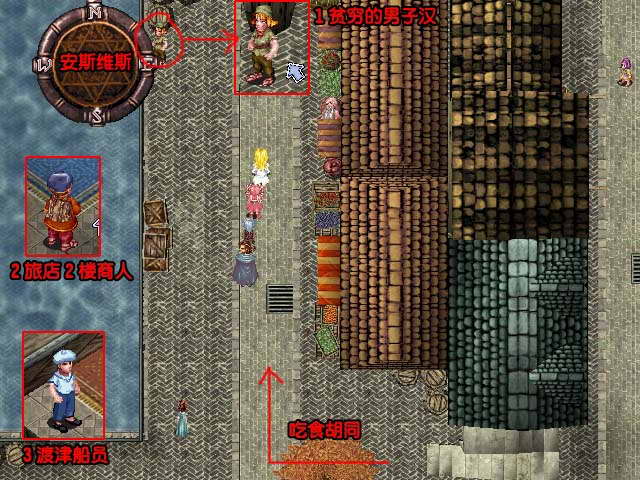 NPC:胡同末端青年,旅店商人,船员