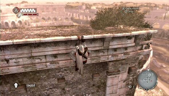 从西北边爬到竞技场的最顶端,羽毛就在墙壁顶部