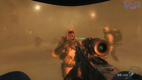 周围都是赌气,能见度很低,我们的枪准镜是热成像的,所以不必担心。