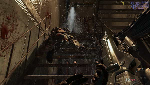 上岸后等队友开门后杀出去,两个房间里的敌人杀光后上楼梯,楼梯上会冲下来一个敌人,干掉后还要小心楼上门口也有两个敌人。
