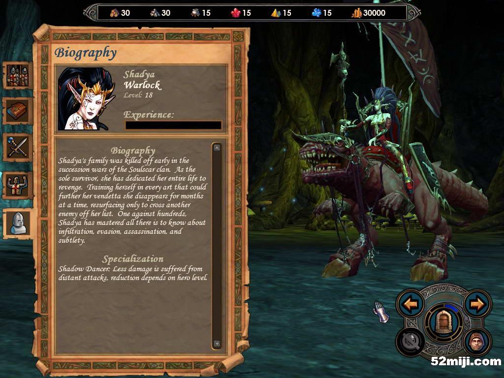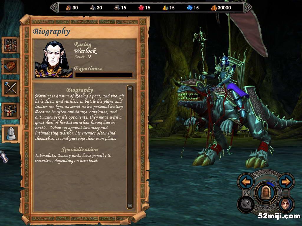 地下城族的英雄特点是Attack和Spellpower属性特别高,相对的Defence可能一点也升不出来,Knowledge同样很低。这意味着它是一个强调快速进攻的种族。配合Raelag降低对方士兵先攻的特技,应该用地龙骑兵等快速部队抢先攻击,配合毁灭系魔法迅速造成巨大破坏。如果战斗拖延的回合过多,自己将很难控制伤亡。