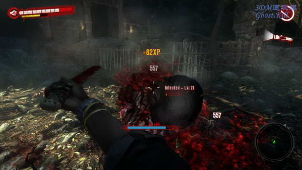 由于我还剩下一颗手雷,所以直接把高级僵尸炸死了,没有手雷的话只能依靠技能了, 先解决掉普通僵尸,最后集中对付高级僵尸,地上有很多补血的,虽然没什么时候可以吃。
