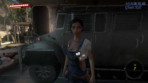 等卡车改装好之后要带上earl的女儿jin,和她对话之后上卡车,开着去目标点, 不得不说本来这车的视野就差,改装之后基本看不到路了。开入目标的隧道之后载入第五章。