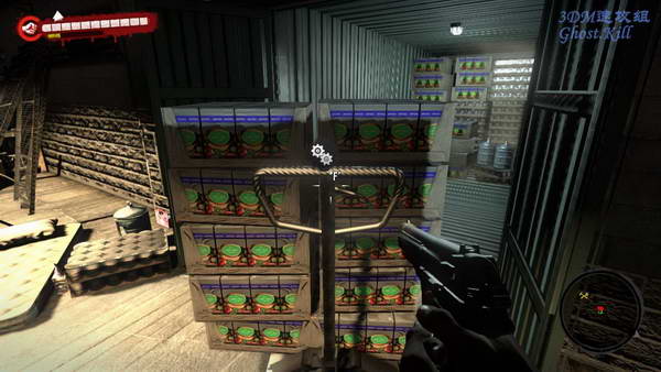 在经过几个房间后又是一个超市,这次的数量更多,而且还有那冲锋枪的敌人, 不过要二十级才能捡,很不幸我不够级。杀光敌人后把一车吃的推到集装箱里。