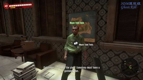 从下水道出来后是个幸存者据点,上楼找mayor对话,他不打算分享任何东西。