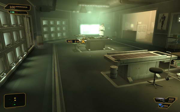1:前去警察局找回神经中枢,来到警察局后可以说服韦恩哈斯,让他放你进去,也可以从警察局后门破解进去。进去后乘电梯来到地下室的停尸房,拿走黑客的神经中枢。(不要移动黑客,不然会警报,警察叔叔会来收拾你)