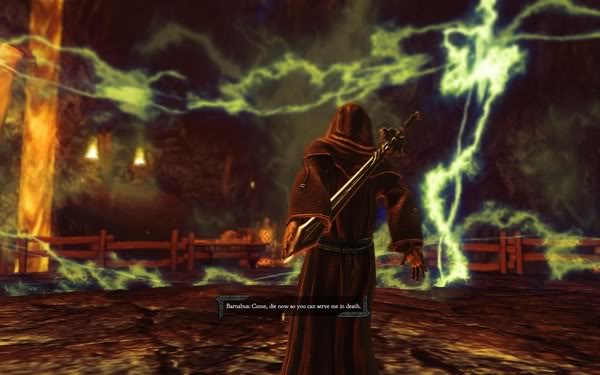 从巢穴出来,众人刚要把主角当作新的主人崇拜,一些本来没有对话的人突然出现,原来他们就是屠杀掉Orobas的屠龙者,他们守护在这里。一场恶斗是免不了了。