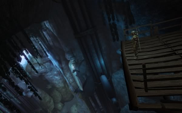 在他的上方有个小山洞,里面是一个矿工,有一些支线任务。他要求你清理一座矿硐以便矿工协会的人可以重新回去采矿。