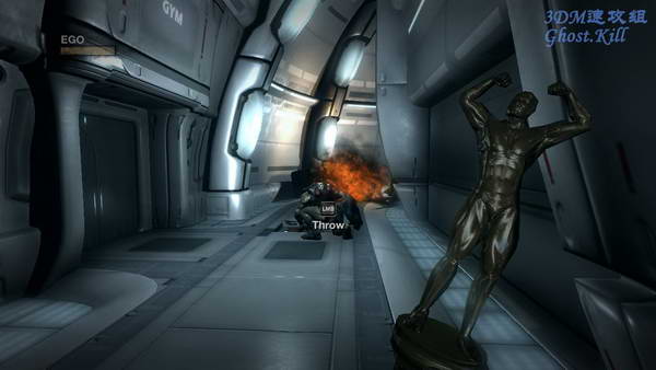 干掉刚刚的外星人后前行把门拉开出去,捡起地上的雕像砸死前面的外星人,砸不死的话也可以打的僵直, 近距离按E可以处决。