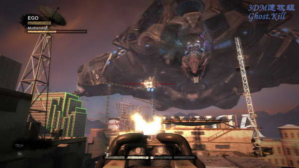 来到楼顶一直对着外星母舰的炮口射击就可以了,注意不要让枪口过热。是不是有外星飞船会飞到脸前来, 扫射打爆就可以。