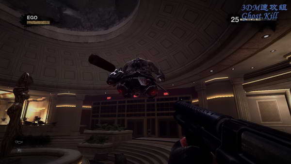 通过各种障碍后和友军会合,一起干掉几个猪脑袋。补充下弹药,等敌人破天花板而入,一个会飞的长得比猪难看的, 还有两个拿枪的我猪,先干掉我猪,不要原地不动,会飞的那个是用导弹的。