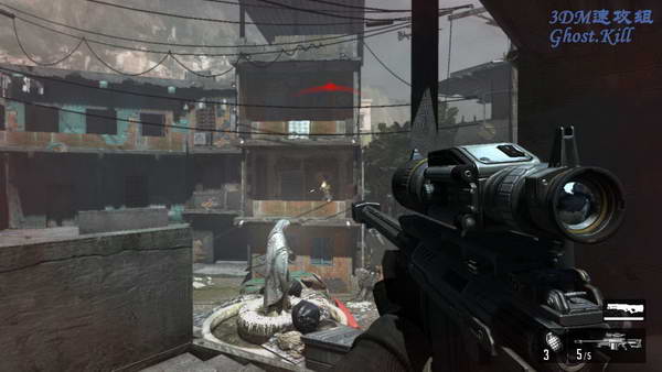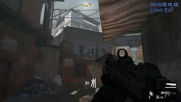 这对面楼上有三个人对话的地方,先把楼下楼上的人杀光后到上面三个人站的位置, 再把楼下和冲到楼上来的敌人杀光,这时候左边的门会打开,干掉里边的敌人后下楼。