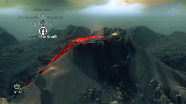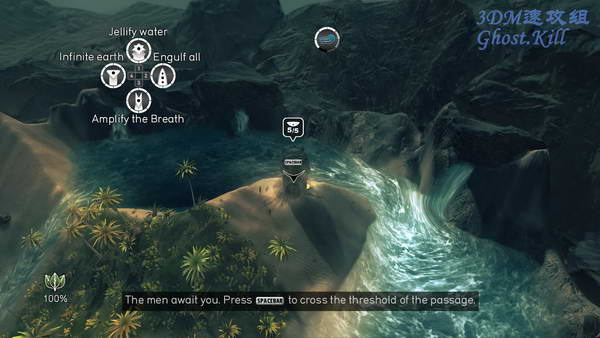 四个村子建好后找到水中的这个过关大门,和最后的图腾一样,用那两个力量该高这里的地势后过关。