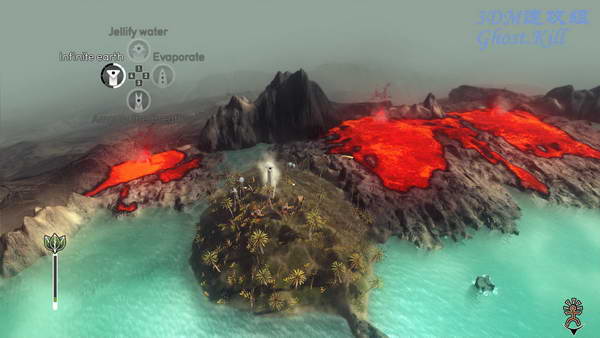 除了地图中间的火山外周围还有,地图中间的火山会越来越小,最后几乎不喷了, 周围的这些却很旺盛,小心火灾,别忘了要一直垫高地基,只要高出周围的墙就可以了。