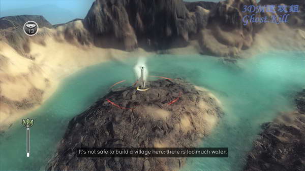 等雨停之后开始作业,让人们原地待命,等把这个图腾周围的土地搞定后再铺一座桥, 然后过去造村庄,接下来可以使用技能了。
