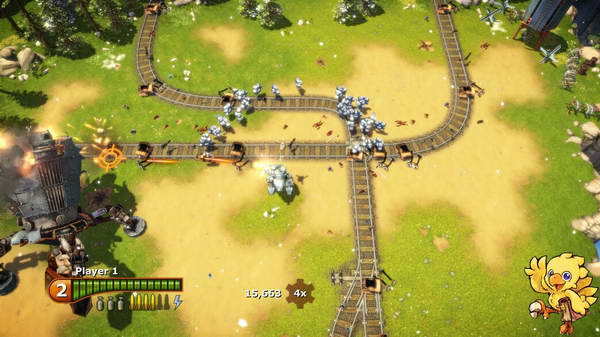 在车站里主要是要抵挡机器人的进攻,小白们依然执着的追随着你。