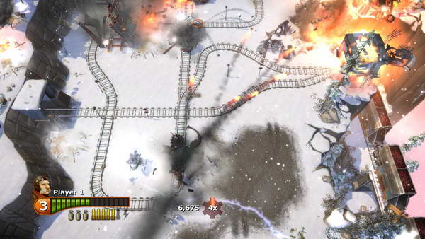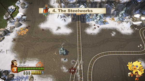 这一关铁路四通八达,轨道上还有铁甲车,一句话前大后小。