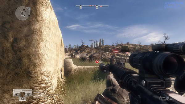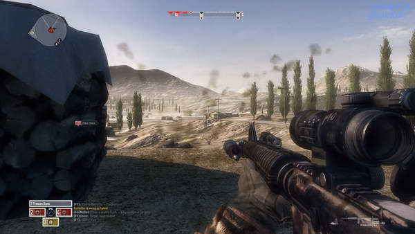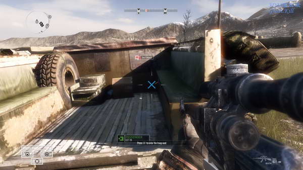 全歼山坡上的敌人后上山,途径的房子里可能有几个敌人,杀光后来到目标地点, 山坡下队友的车队正开过来,这时候遭到了敌人袭击。