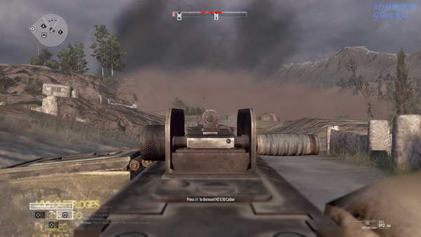 杀光敌人后再上车,开车去下一个目标点,在一个下坡前停下,去围墙那里找掩护,干掉坡道下面的敌人, 人数还是很多,小心他们可能会上悍马车在旁边绕过来。