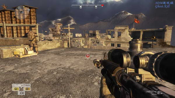 下车后跑到目标点,可以看到远处的敌人基地,先解决掉能看到的敌人, 然后一边找掩体一边前进,最后重进敌人基地,全员杀光。