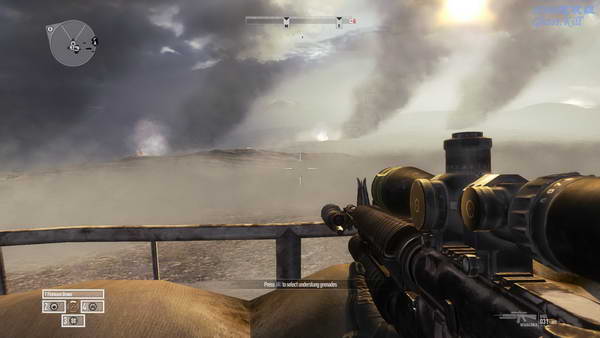 敌人死光后到目标建筑进行最后的防守,数百的敌人会从前面的地平线上攻过来, 在楼下可以捡火箭筒干掉敌人装甲车,火箭筒旁边还有狙击枪。
