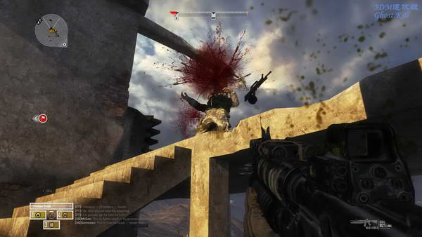 楼顶有很多弹药补给点,楼梯间里还有火箭筒,等敌人直升机来了之后打下来, 然后大量的敌人会从下面各个方向杀过来,守一段时间后其他两个小队开始撤退,过一会我们也撤退。
