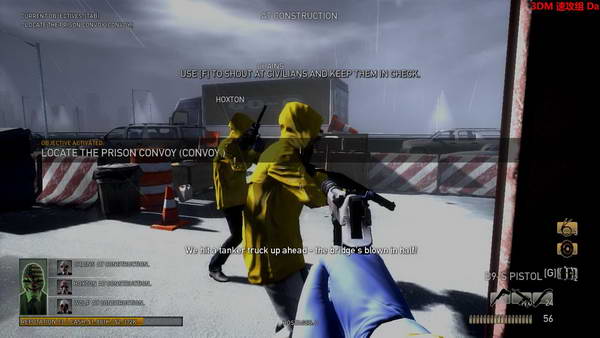上图就是关卡最多警察的位置,那白蓝色油罐车附近有大量警察。