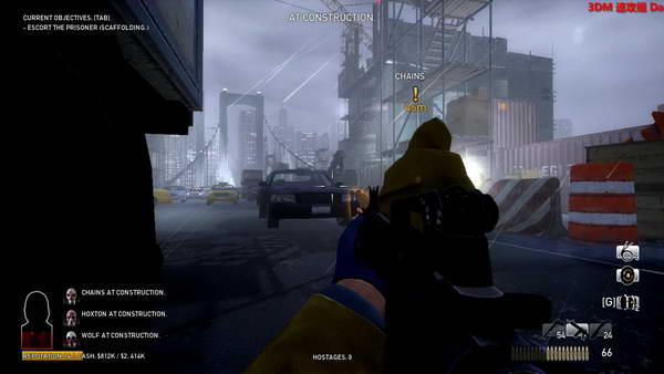玩这关卡的时候最理想的是12级,有了医疗包再玩。开始用电锯,锯开囚车门