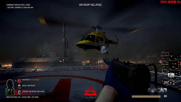 金库的大门打开之后,打破玻璃,拿到钻石。上屋顶,等待直升机,关卡结束