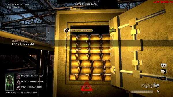 等待电钻把保险箱钻开,这时候会有大量敌人。打开保险箱拿黄金。
