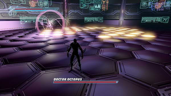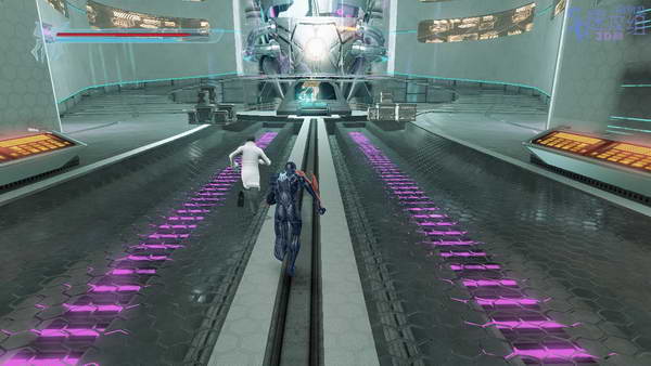 这里会有BOSS使用机械臂碍事,地上有四个口,看哪个口是打开的,过去等BOSS攻击后躲开, BOSS会触电,然后我们跳到机械臂上近身按B攻击BOSS,这样两次就能搞定。