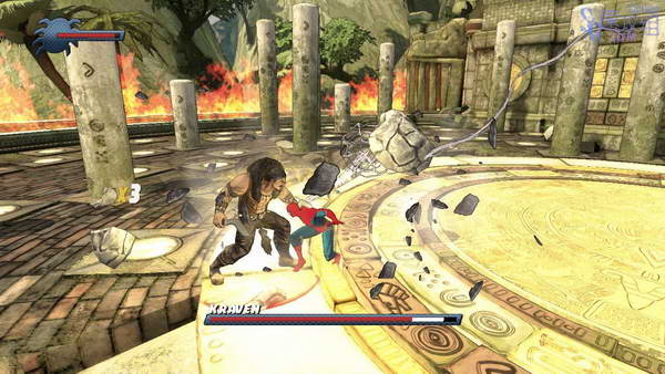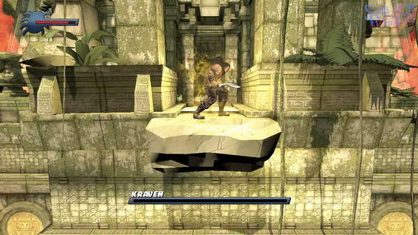 最后BOSS没血了会站到二层向我们扔飞刀,我们利用周围的柱子跳到BOSS那里一脚踹飞他,得到碎片,过关。
