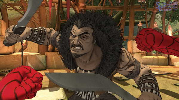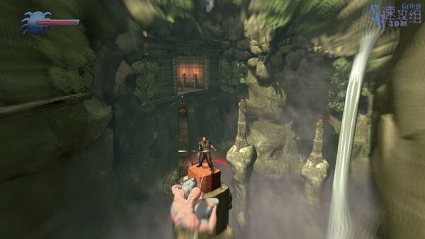 CG结束后我们在一个很原始的地方醒来,前进去找BOSS,沟什么的,没有路什么的都不是问题, 荡秋千都能过去,到图中的大门这里停下等BOSS废话几句后大门打开,继续追。